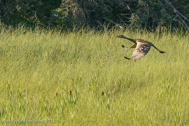 Reports of Sandhill Cranes swimming are sparse. We have found no accounts of cranes swimming in staging areas such as along the Platte River.