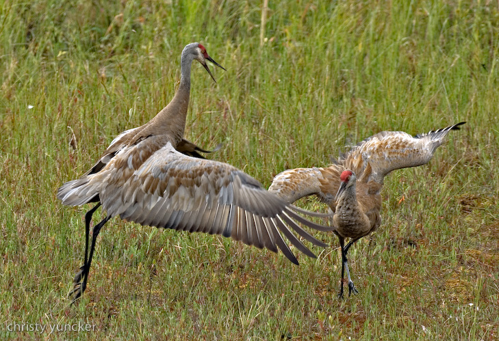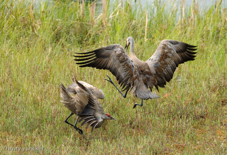 For a discussion of dancing, click on the link above: "Why do cranes dance?"and also see Alaska Sandhill Crane Blog for June 18, 2009.