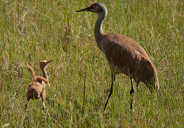 Fratricide is not usually responsible for colt death - On webpages and in the published literature, it is repeatedly stated that the stronger crane colt kills the weaker one and thus two hatchlings yield one fledgling. We think that this is an error of interpretation, perpetuated by frequent repetition. It does not fit our observations. Bill-sparring between sibling colts is quite common, and certainly most crane pairs fledge only one of their hatchlings. However, over our years of observation, we have never seen the stonger colt (usually the first-hatched) injure the weaker one.